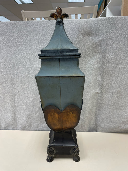 BLUE BROWN METAL LIDDED CONT