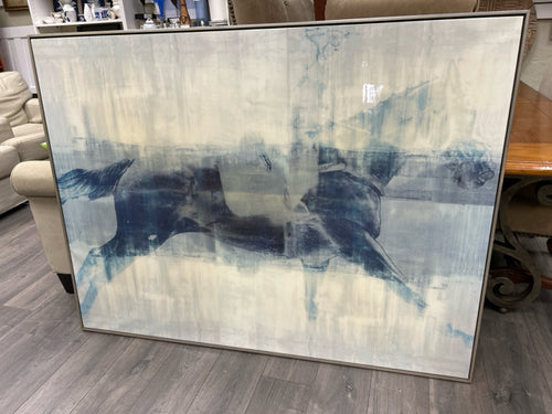 LARGE BLUE HORSE AND JOCKEY