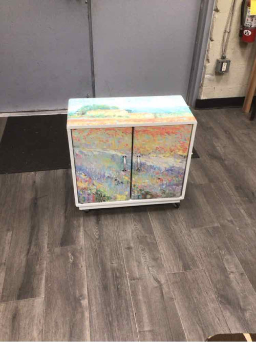 LANDSCAPE PAINTED CABINET ON WHEELS