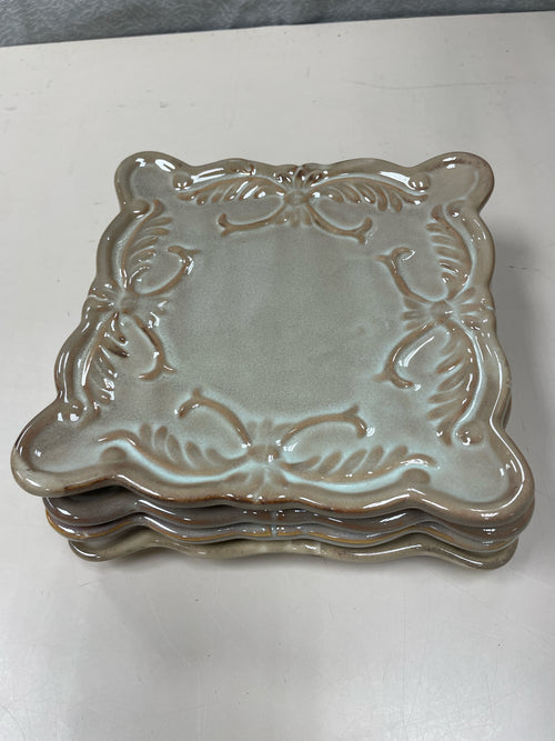 4 ORNATE SQUARE SNACK PLATES