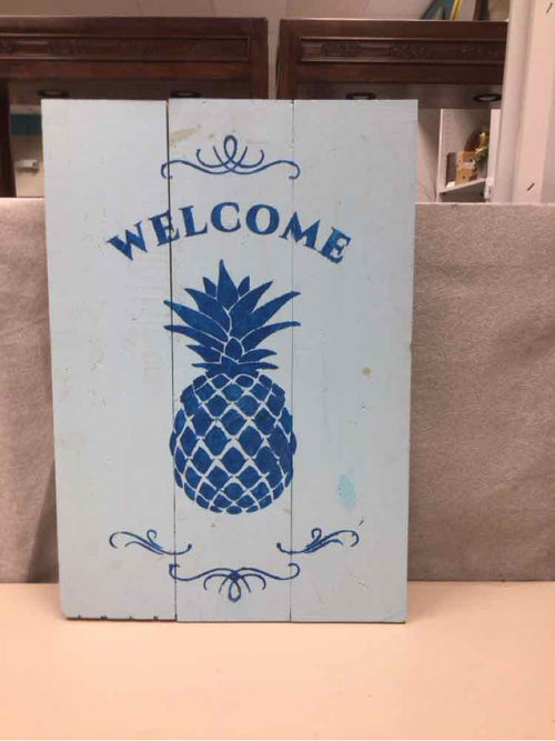 WELCOME BLUE PINEAPPLE WOOD SIGN