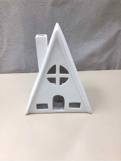 WHITE CERAMIC A-FRAME TEALIGHT HOLDER