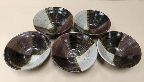 5 HANDMADE BLACK/RED/WHITE BOWLS
