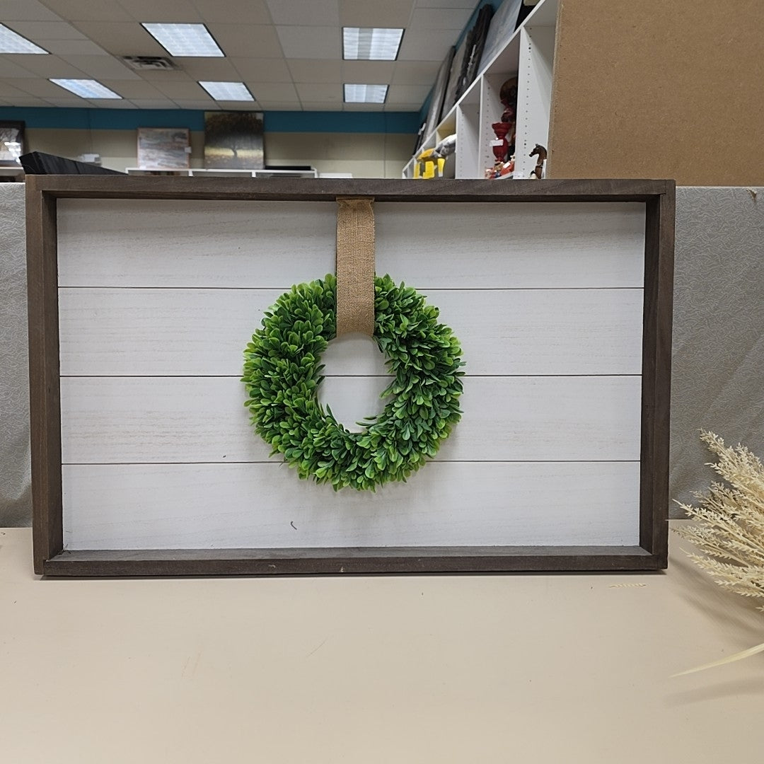 WREATH ON WHITE GREY WOOD