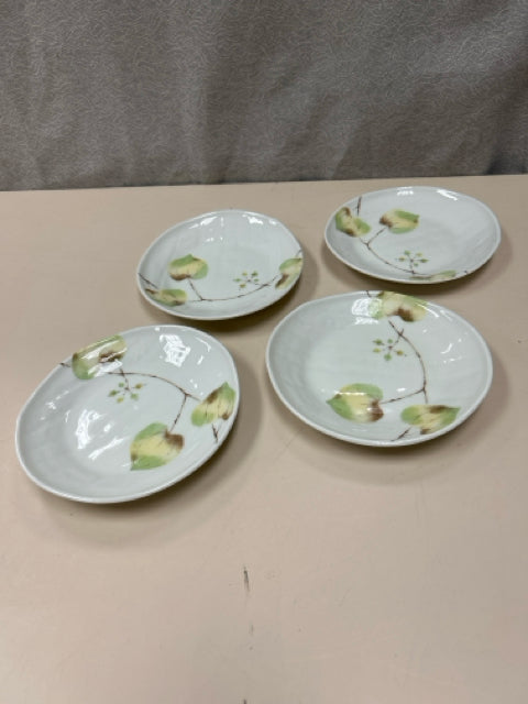 4 SM WHITE PLATES W/LEAVES