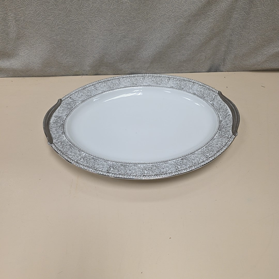 BLACK WHITE FLORAL SERVING PLATE