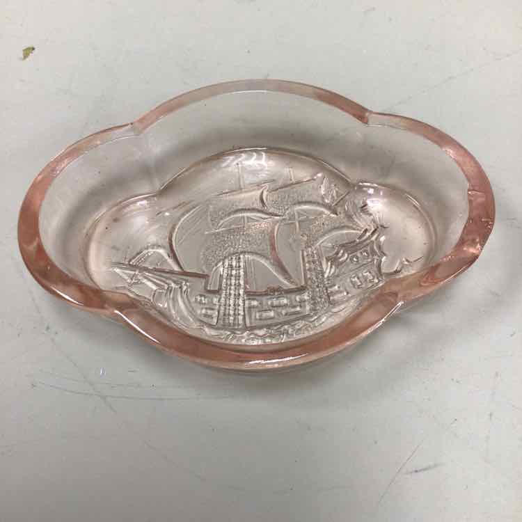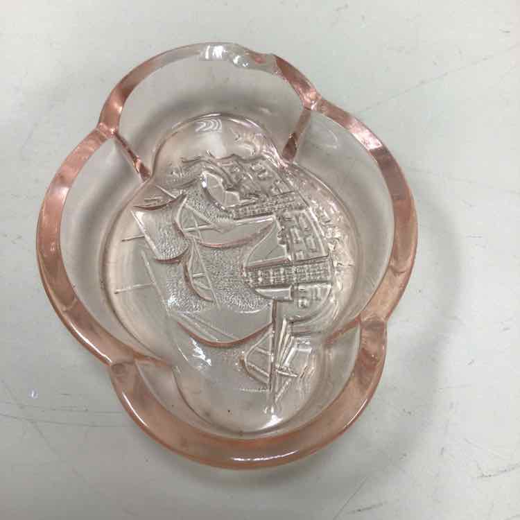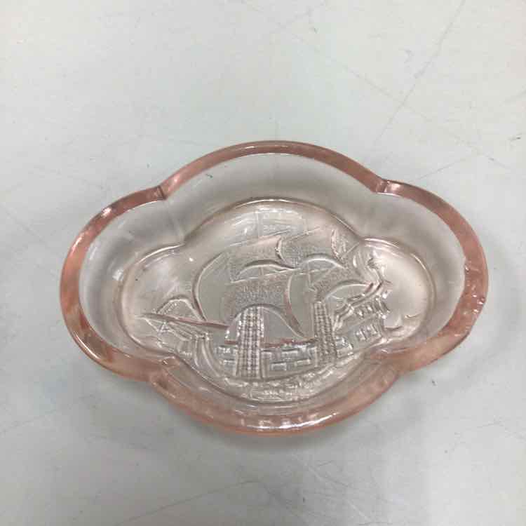 MINI PINK GLASS ASHTRAY W/SHIP