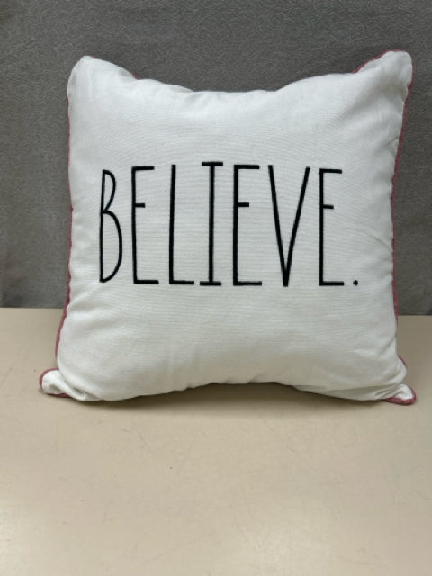 "BELIEVE" WHITE/RED STRIPE PILLOW