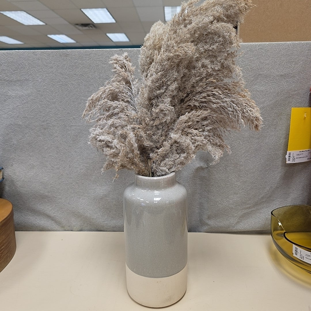 2 TONE GREENISH/TAN VASE W/SEAGRASS