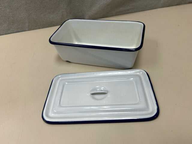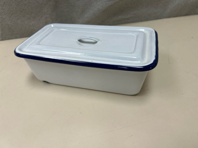BLACK WHITE ENAMEL LIDDED CONT