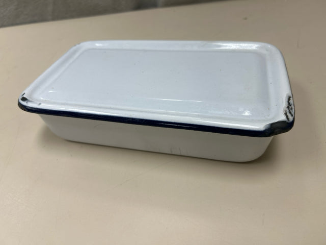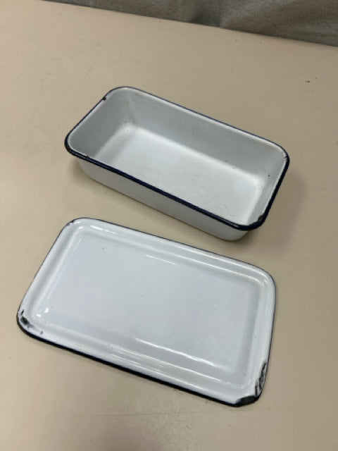 BLACK WHITE ENAMEL LIDDED CONT