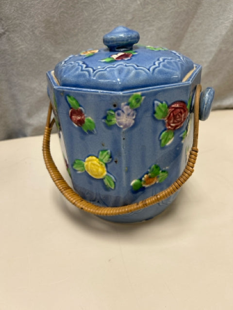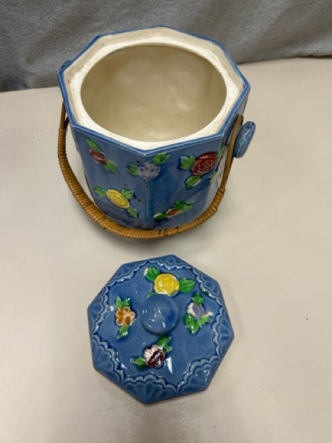 BLUE FLORAL CERAMIC CONT. W/HANDLE