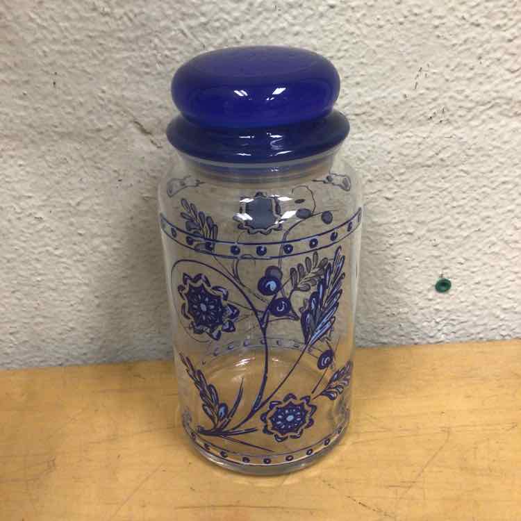 BLUE GLASS JAR W/LID