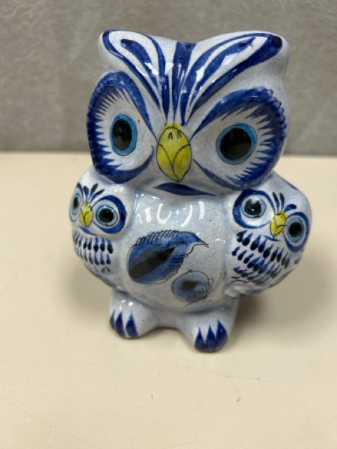 BLUE WHITE CERAMIC OWLS
