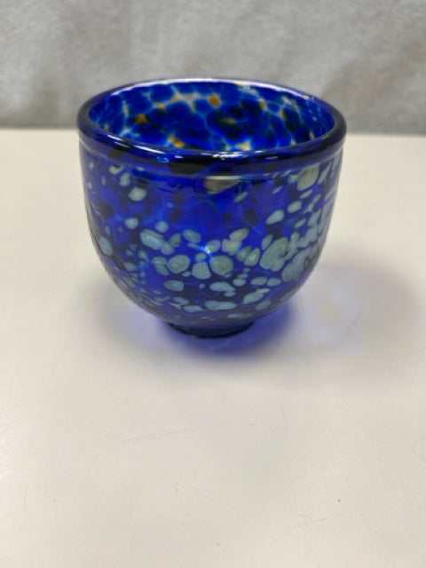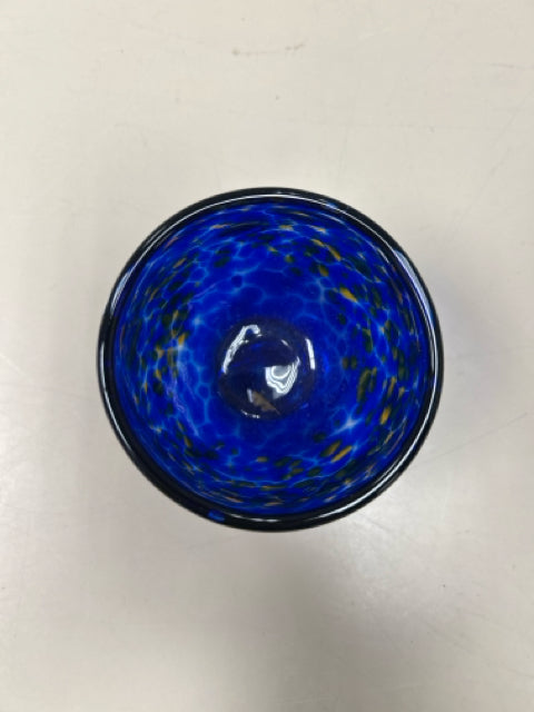 BLUE YELLOW BLOWN GLASS BOWL
