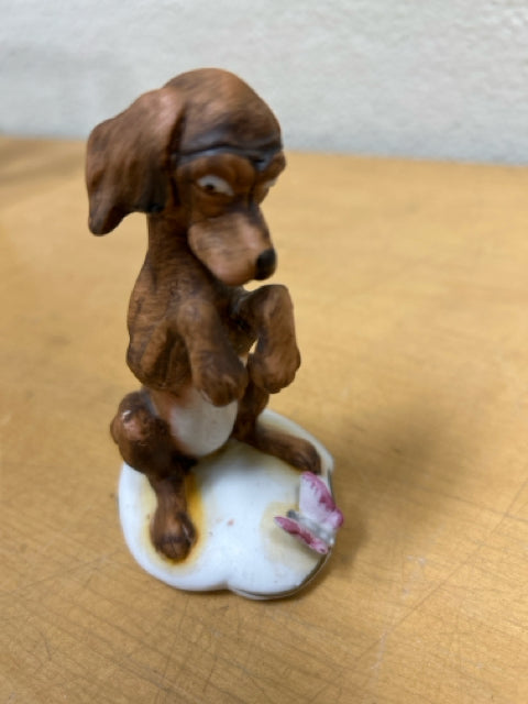 BROWN DOG W/BUTTERFLY FIGURINE