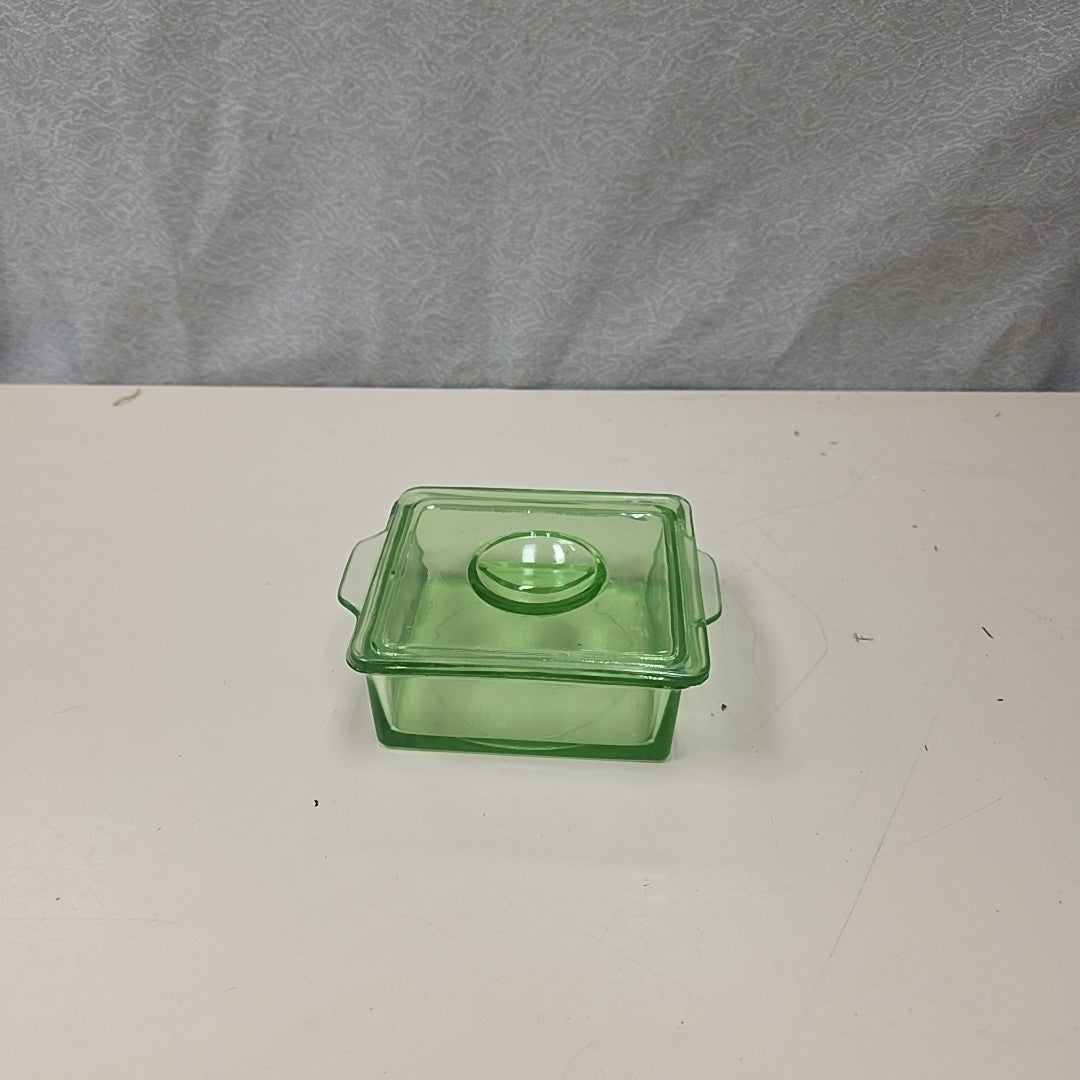 GREEN DEPRESSION GLASS CONTAINER