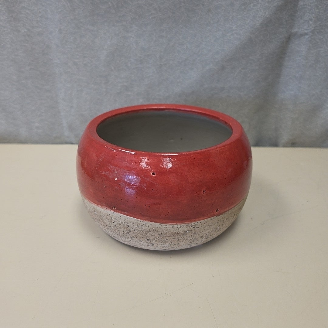 RED TAN ROUND CERAMIC BOWL