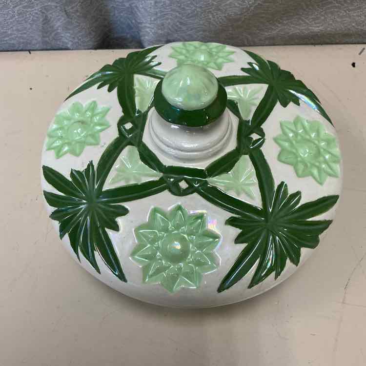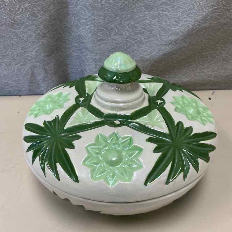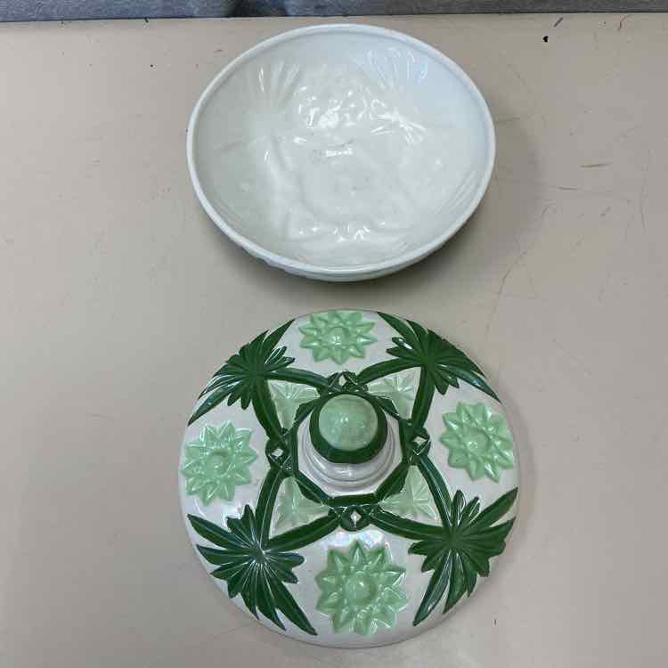 WHITE/GREEN BOWL W/LID