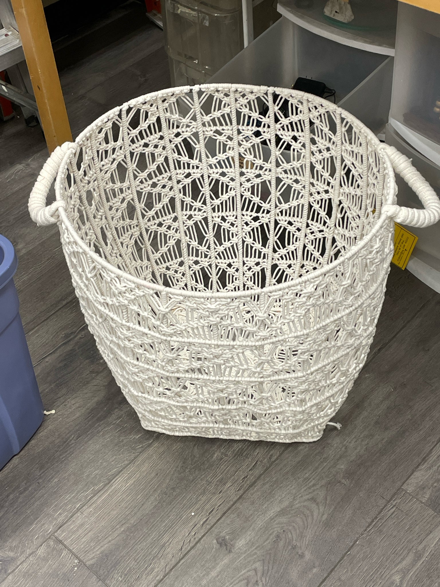 WHITE WEAVE HANDLE BASKET