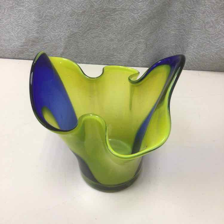 YELLOW BLUE ABSTRACT VASE