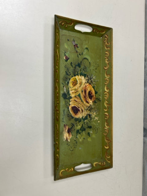 YELLOW FLORAL PAINTED METAL TRAY