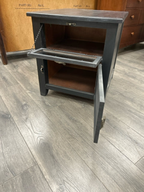 BLACK END TABLE W/GLASS CABINET