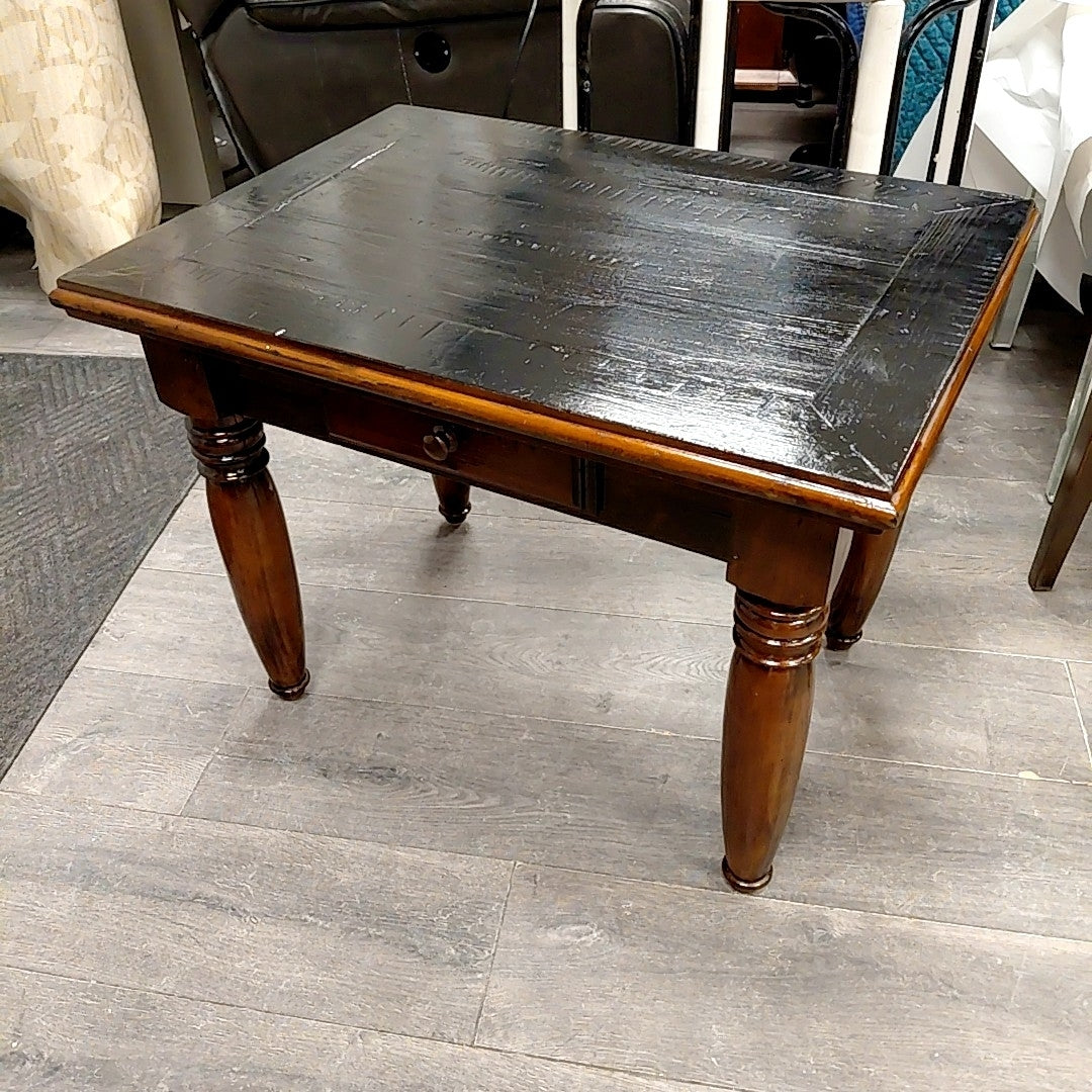 DARK WOOD END TABLE W/DRAWER