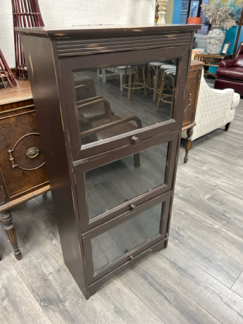 DARK WOOD GLASS BARRISTER BOOKCASE