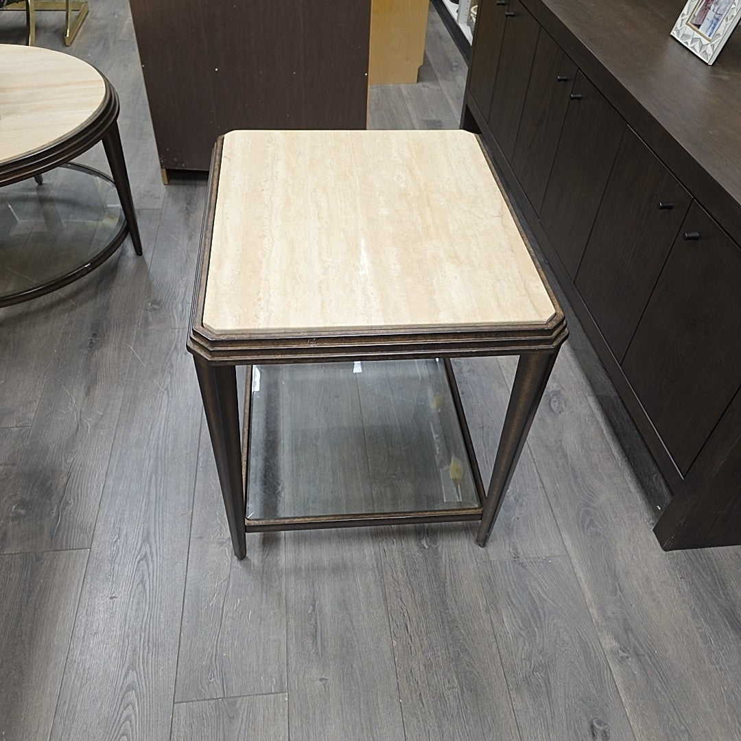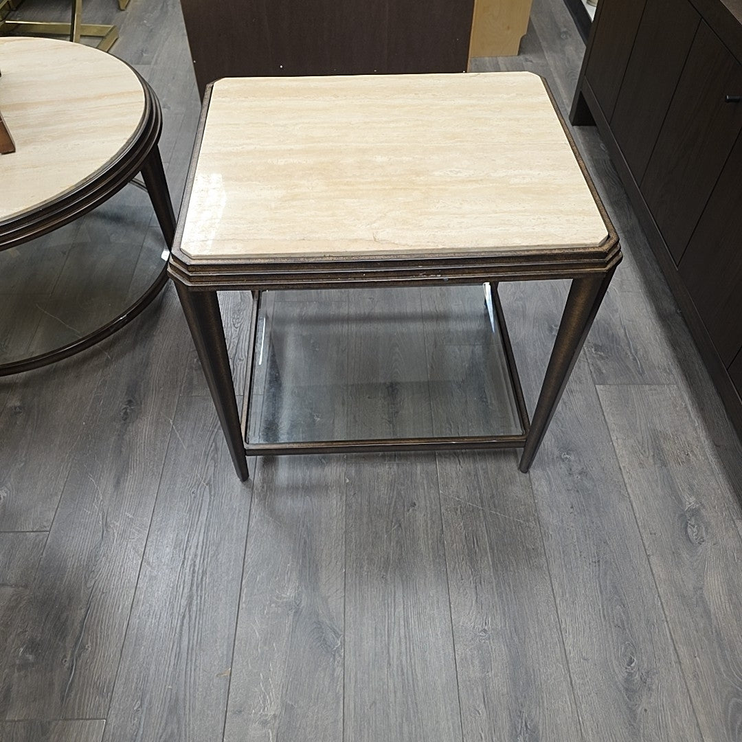 METAL STONE GLASS END TABLE