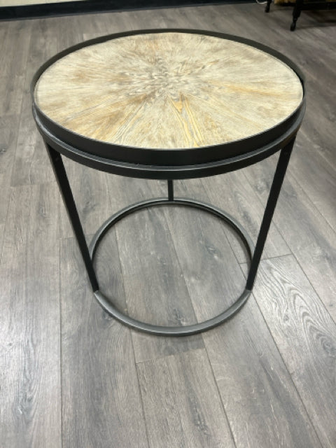 ROUND METAL WOOD END TABLE
