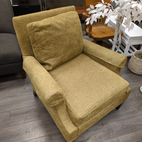 BROWN UPHOLSTERED ARMCHAIR