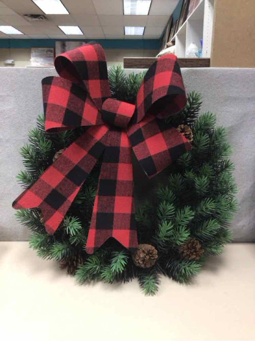 PLAIN WREATH W/BLACK/RED BOW