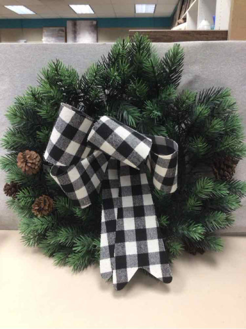 PLAIN WREATH W/BLACK/WHITE BOW