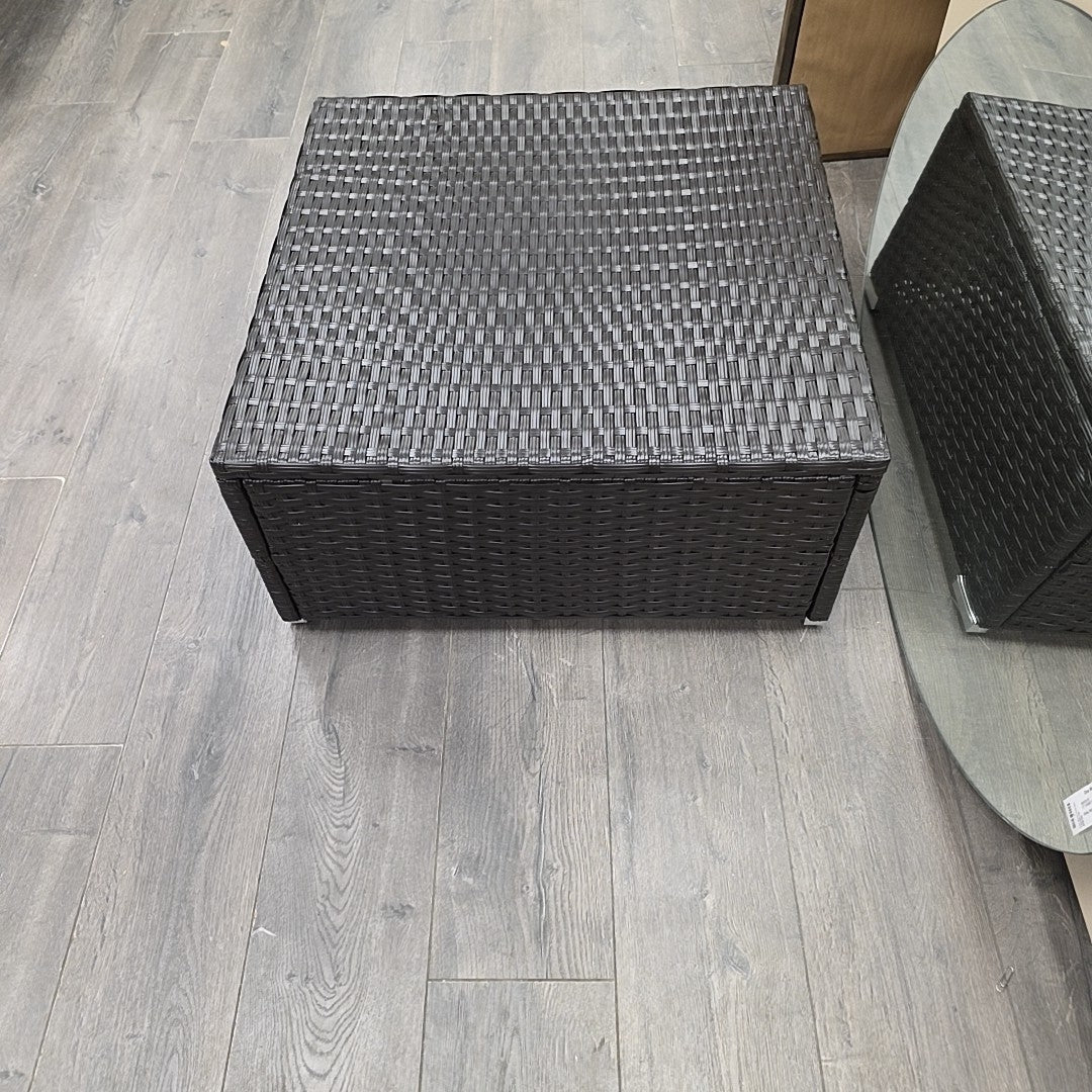BLACK FAUX WICKER OTTOMAN