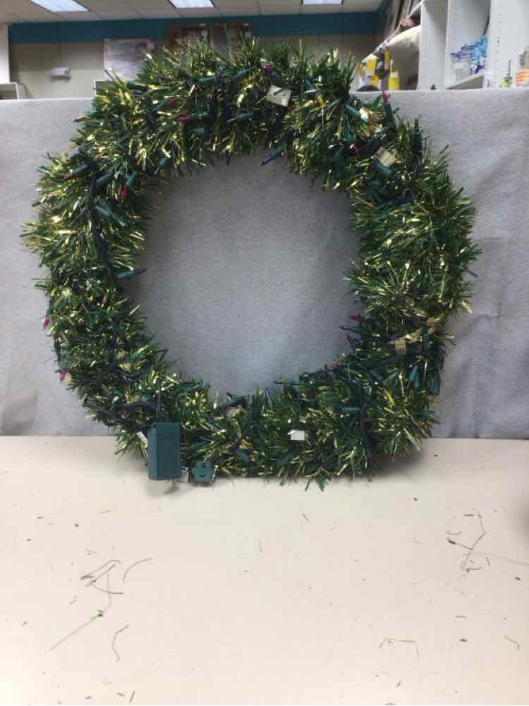GOLD/GREEN WREATH W/MULTICOLOR LIGHTS