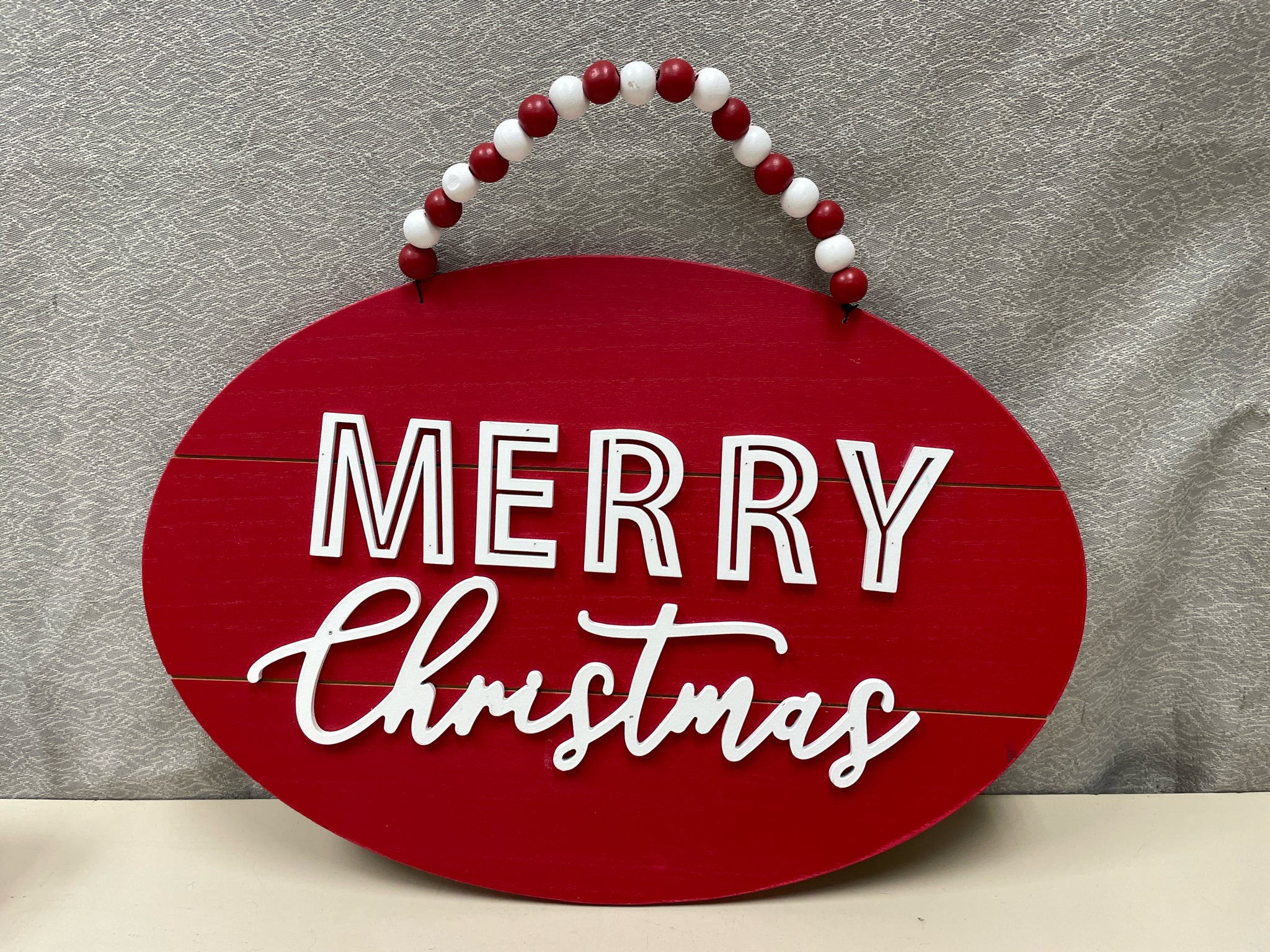 RED "MERRY XMAS" WOOD HANGING