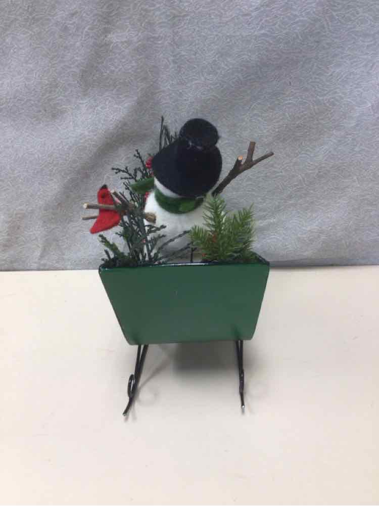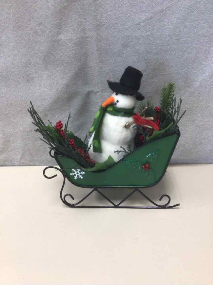 SNOWMAN IN GREEN SLEIGH