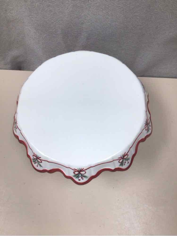 WHITE/RED PINE BRANCH CAKE PLATE