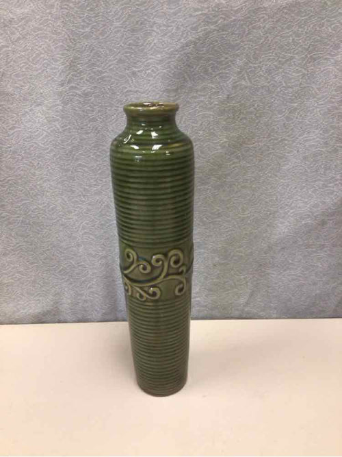 SKINNY GREEN STRIPED VASE