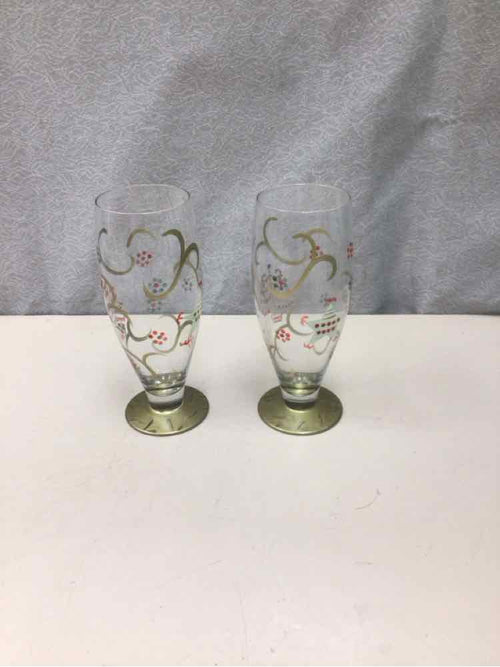 2 GOLD XMAS THEME GLASSES