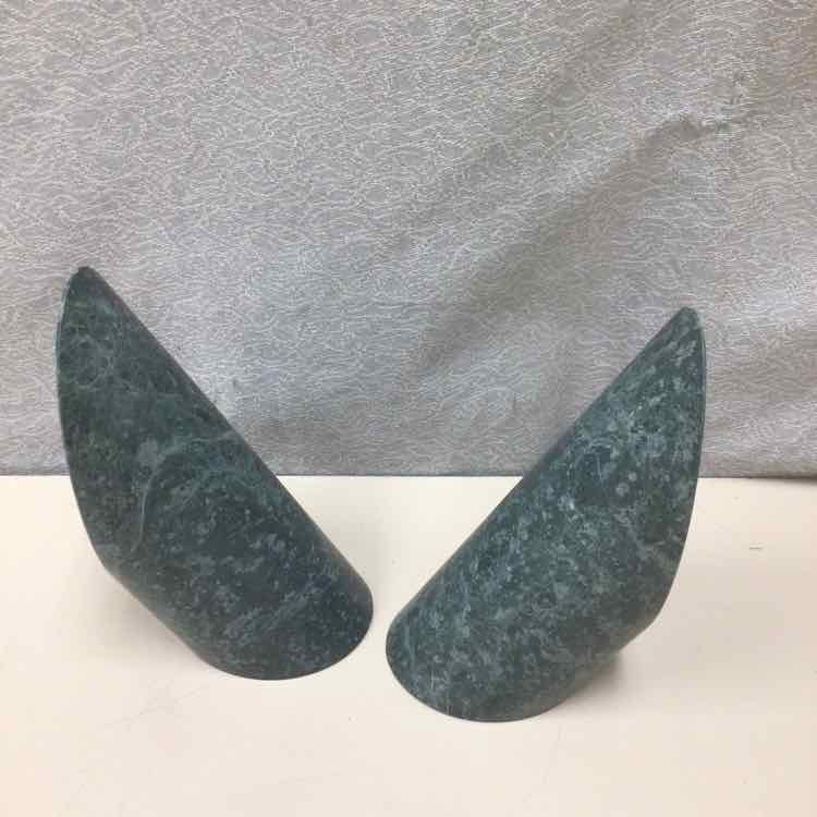 2 GREEN STONE BOOKENDS