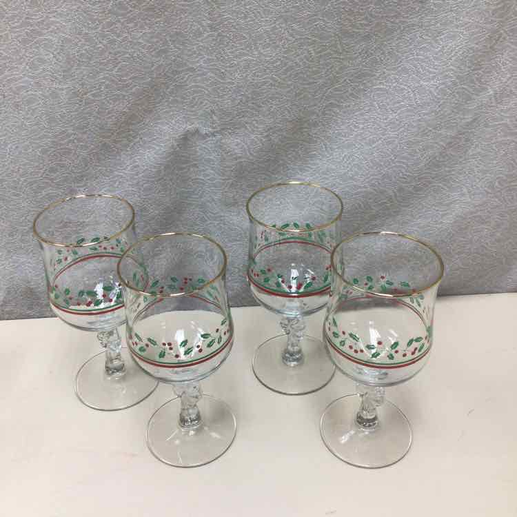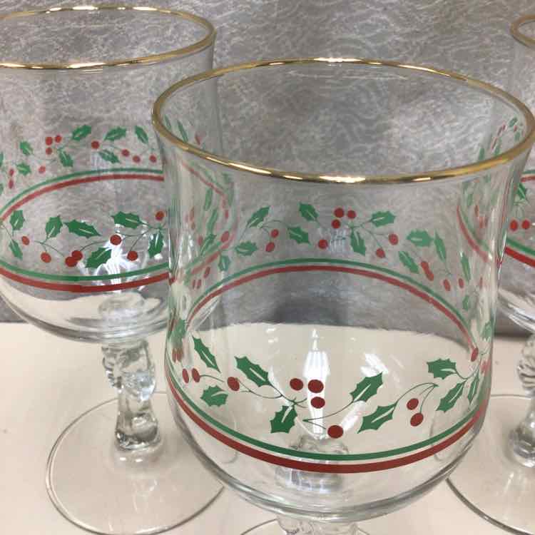 4 HOLLY THEME STEMWARE GLASSES