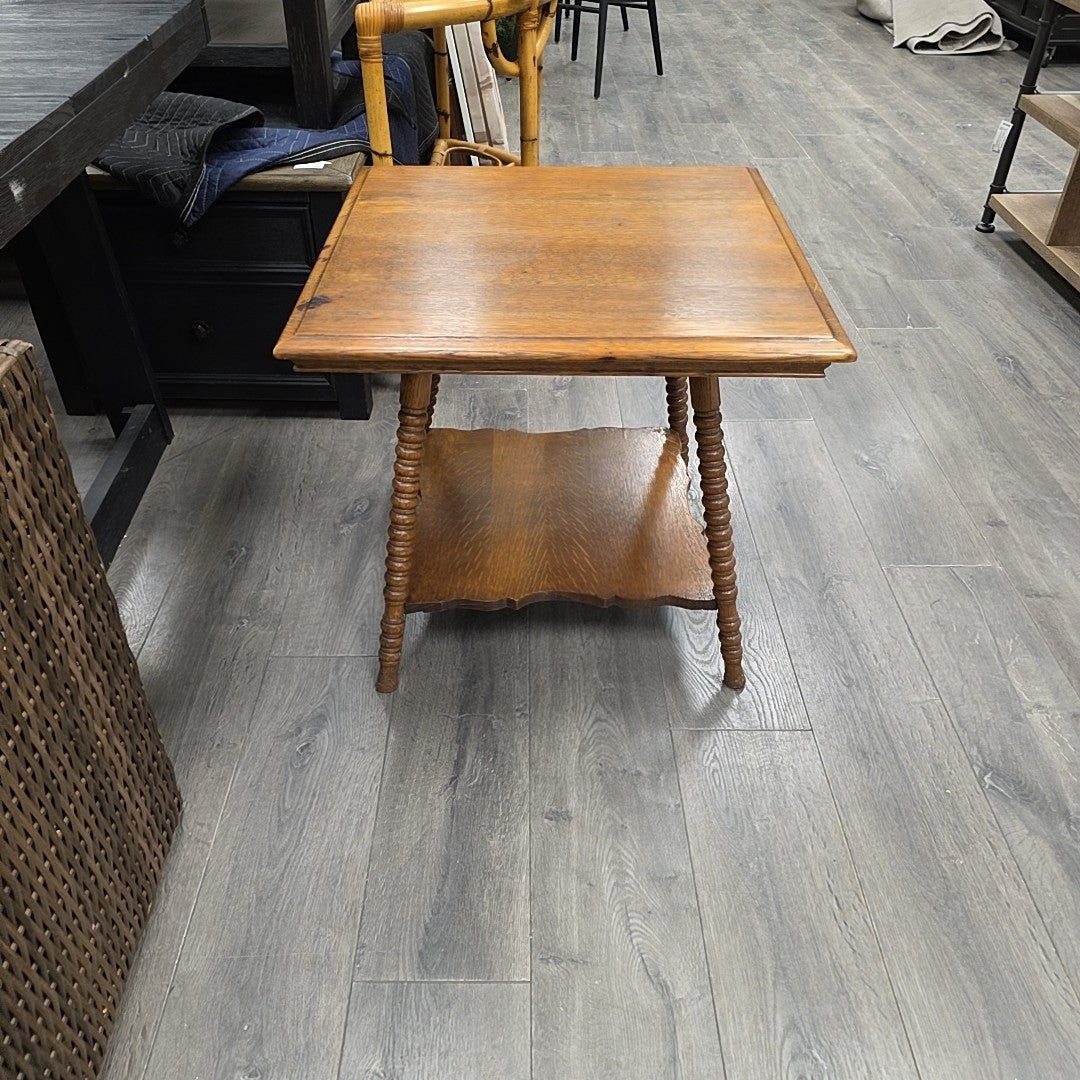 ANTIQUE OAK SPINDLE END TABLE