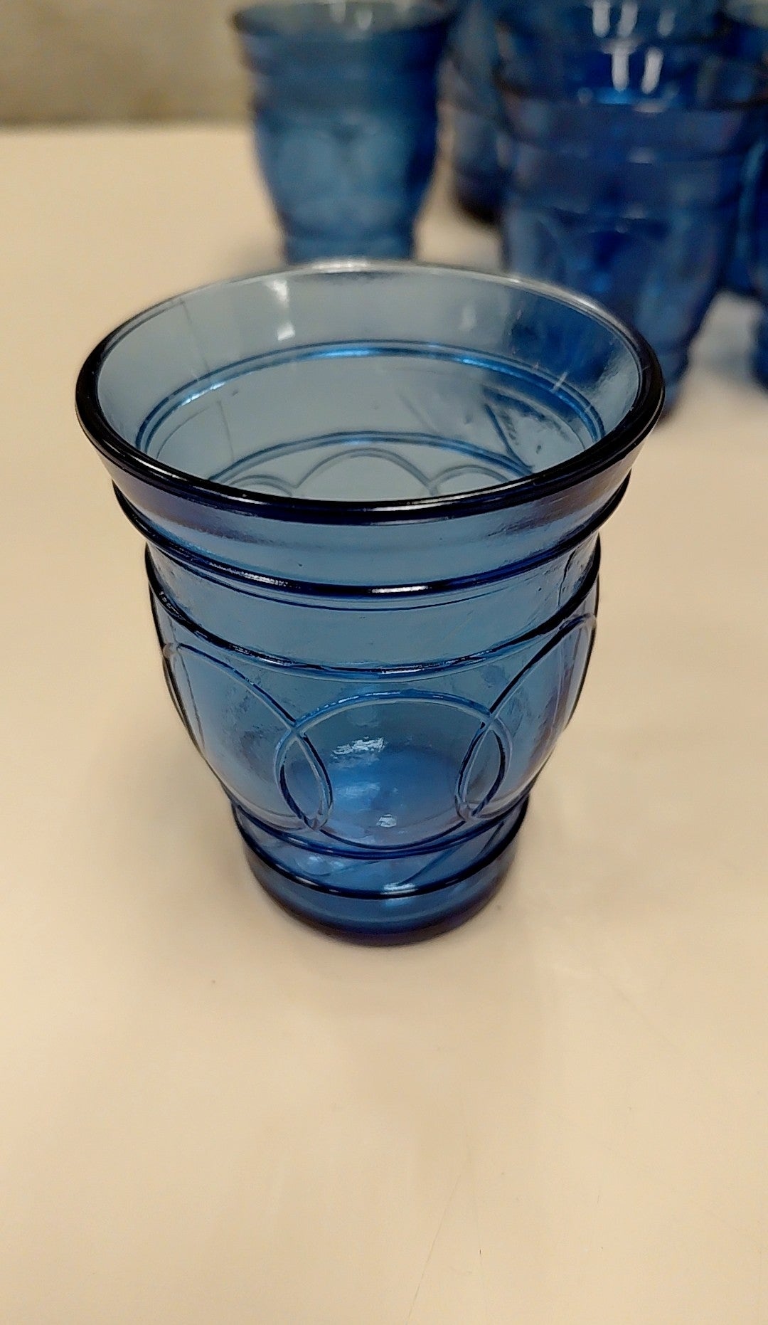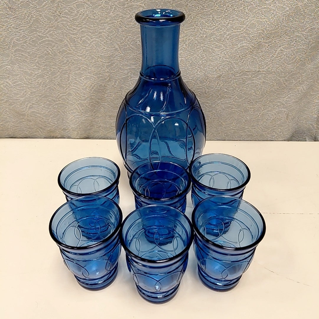 BLUE GLASS SHOT GLASSES W/DECANTER