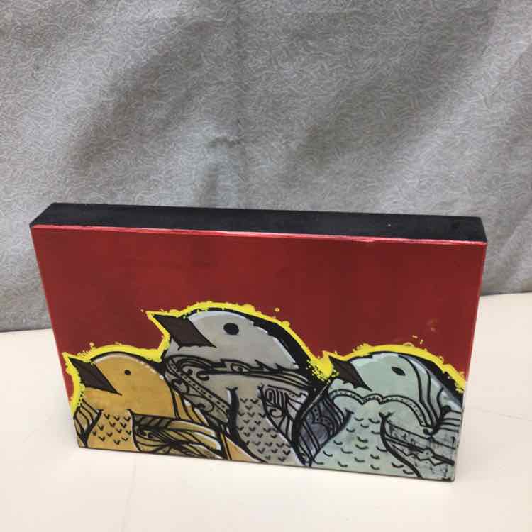CARTOONY BIRDS ON RED BG