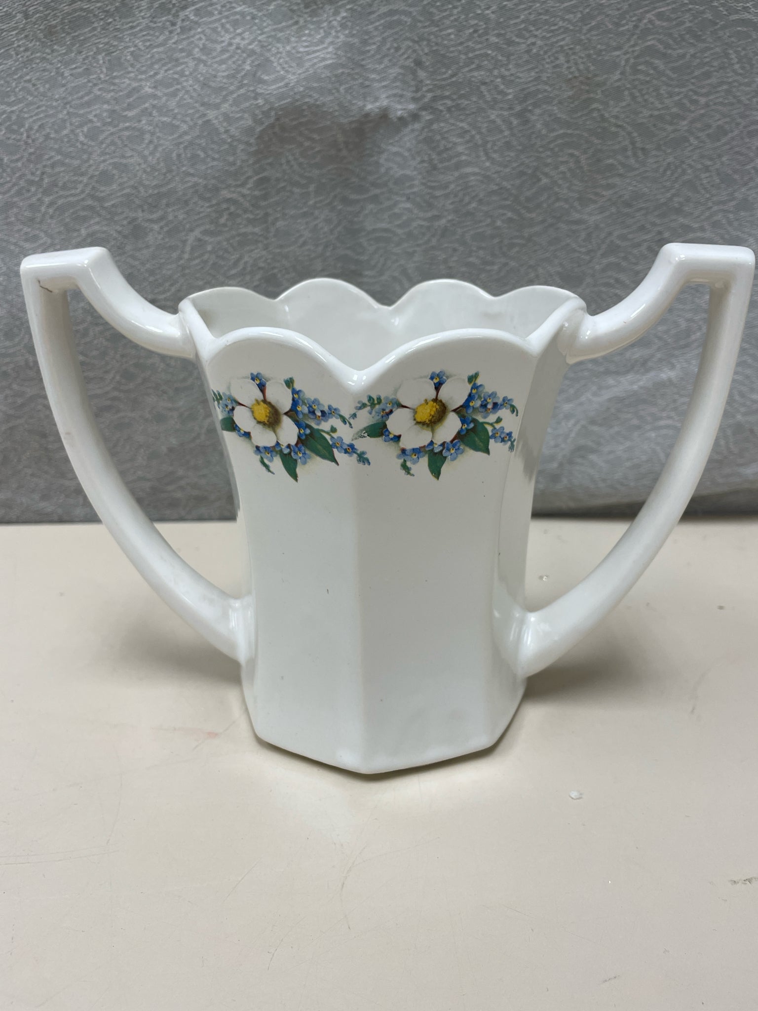 CREAM FLORAL CERAMIC VASE W/HANDLES