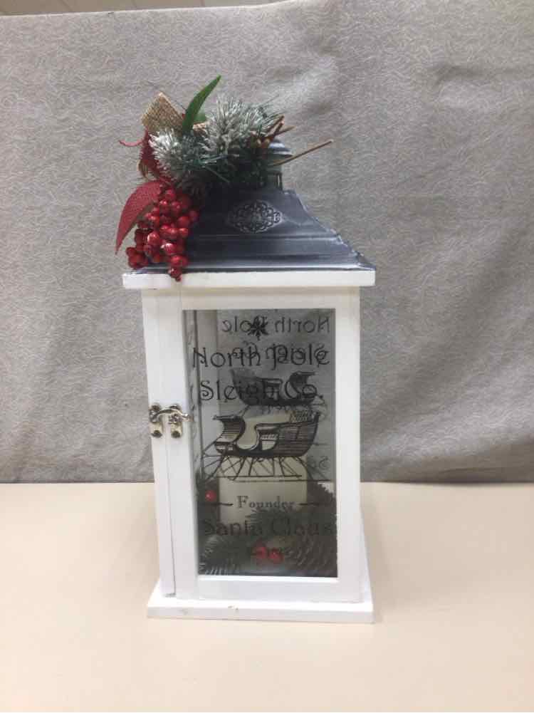 LANTERN W/LIGHT UP CANDLE & HOLLY