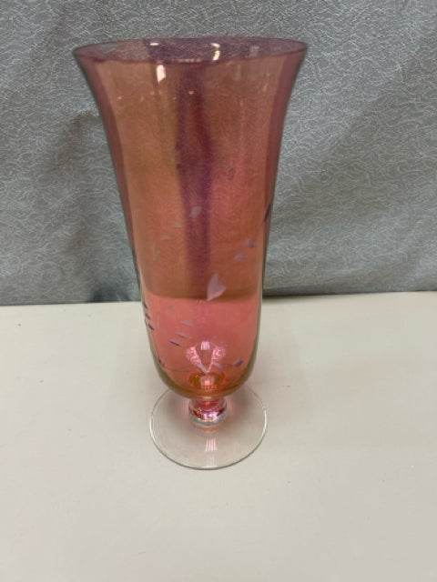 PINK GLASS ETCHED VASE