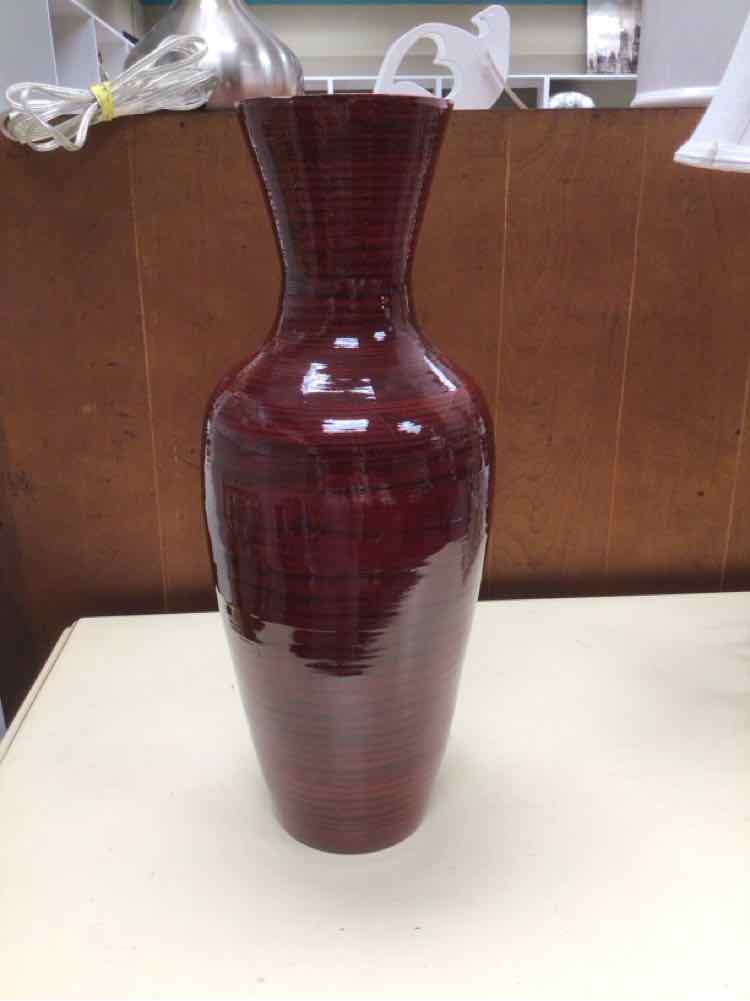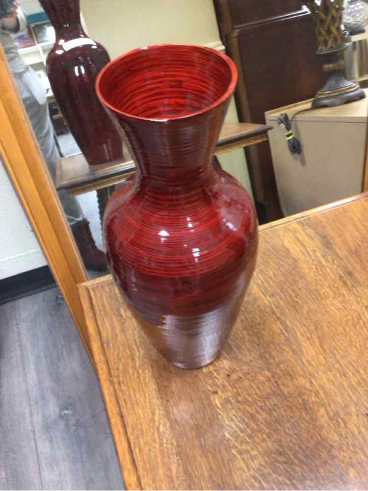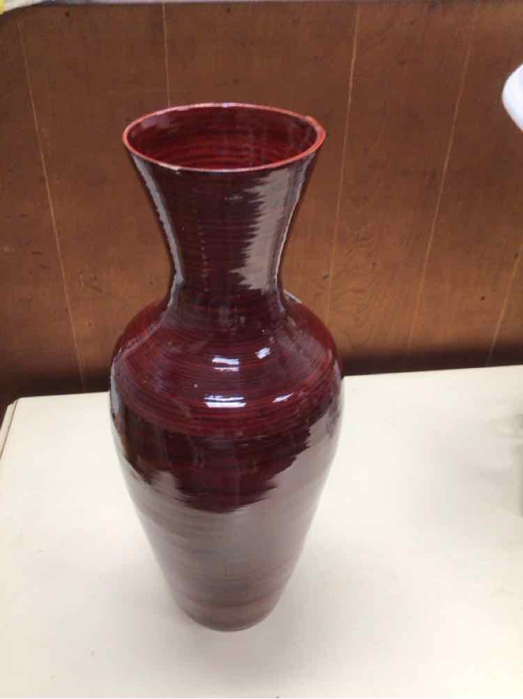 TALL RED WOOD VASE